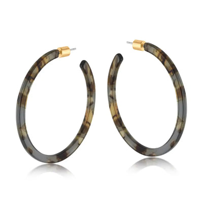 The handcrafted Ilona resin hoops feature soft, elegant tones, creating a bold yet subtle look, adding a modern touch to any outfit, perfect for both casual and dressed-up occasions.