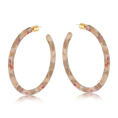These handcrafted hoop resin earrings feature soft, elegant tones, creating a bold yet subtle look. A stylish accessory that adds a modern touch to any outfit, perfect for casual or dressed-up occasions.