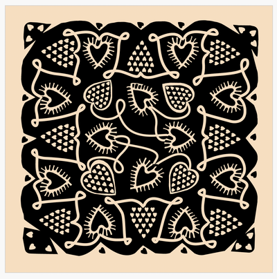 This bandana features a pattern at once geometric and organic, emulating woodblock in its contrast of black and ivory.