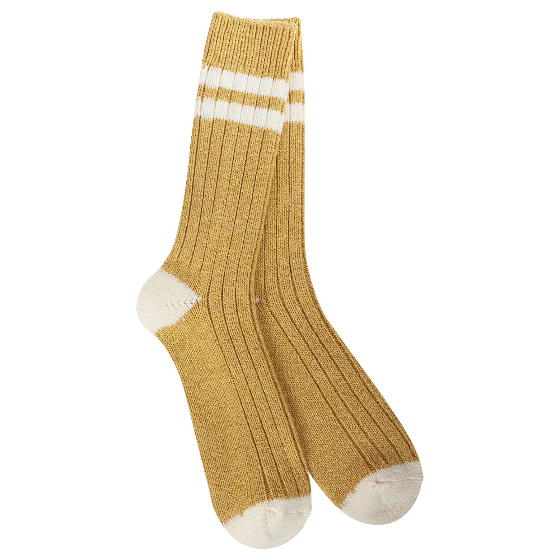 This new Rugby Ragg Crew sock features an athletic look but soft cotton feel. The subtle heathering gives each pair an extra luxe look.