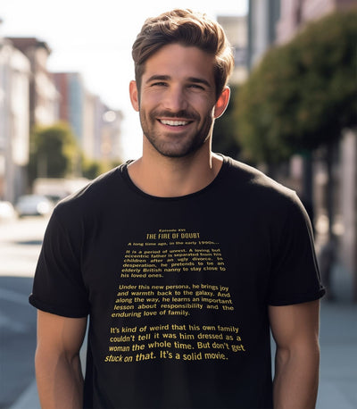 It is a period of unrest. A loving but eccentric father is separated from his children after an ugly divorce. In desperation, he pretends to be an elderly British nanny to stay close to his loved ones.