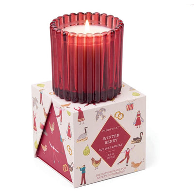 Part of Paddywax's special holiday collection, this Winter Berry soy wax candle comes in a richly tinted, ribbed, red glass vessel, contained in a hand-illustrated and uniquely-shaped box designed especially for gifting. These candles make great Christmas gifts, hostess gifts, or stocking stuffers.
