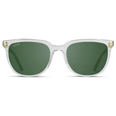 The Abner square sunglasses pair easily with various color outfits. This retro style comes with UV protection lenses that protect your eyes from harmful rays. It also has a polarized lens to block unwanted glare. This acetate square frame is lightweight and comfortable to wear daily.  This smoke green lens paired with a champagne crystal frame is a classic pair of sunglasses for  all ages.