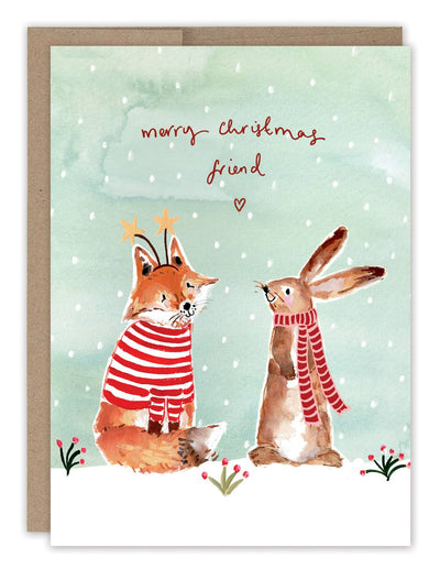 Fox & Bunny Merry Christmas Friend Holiday Card
