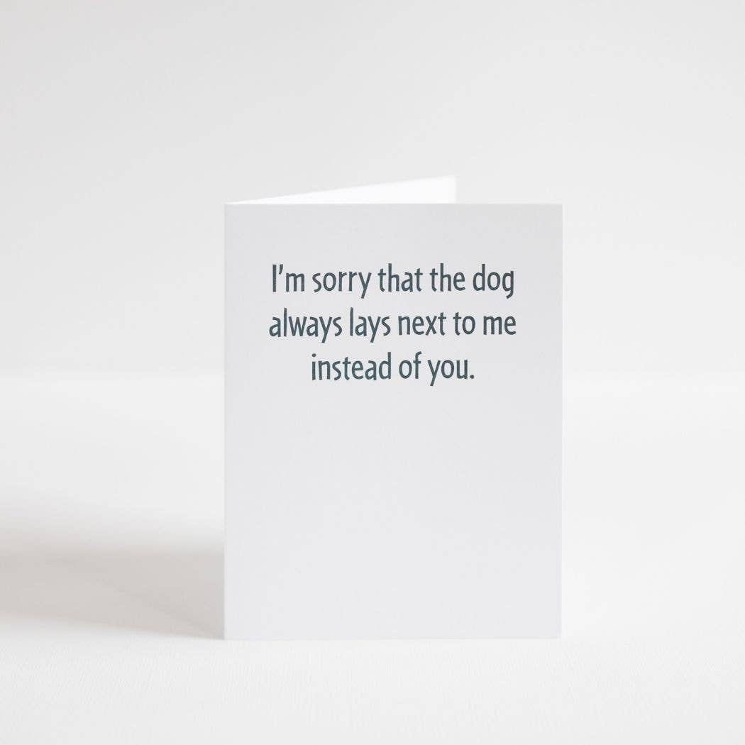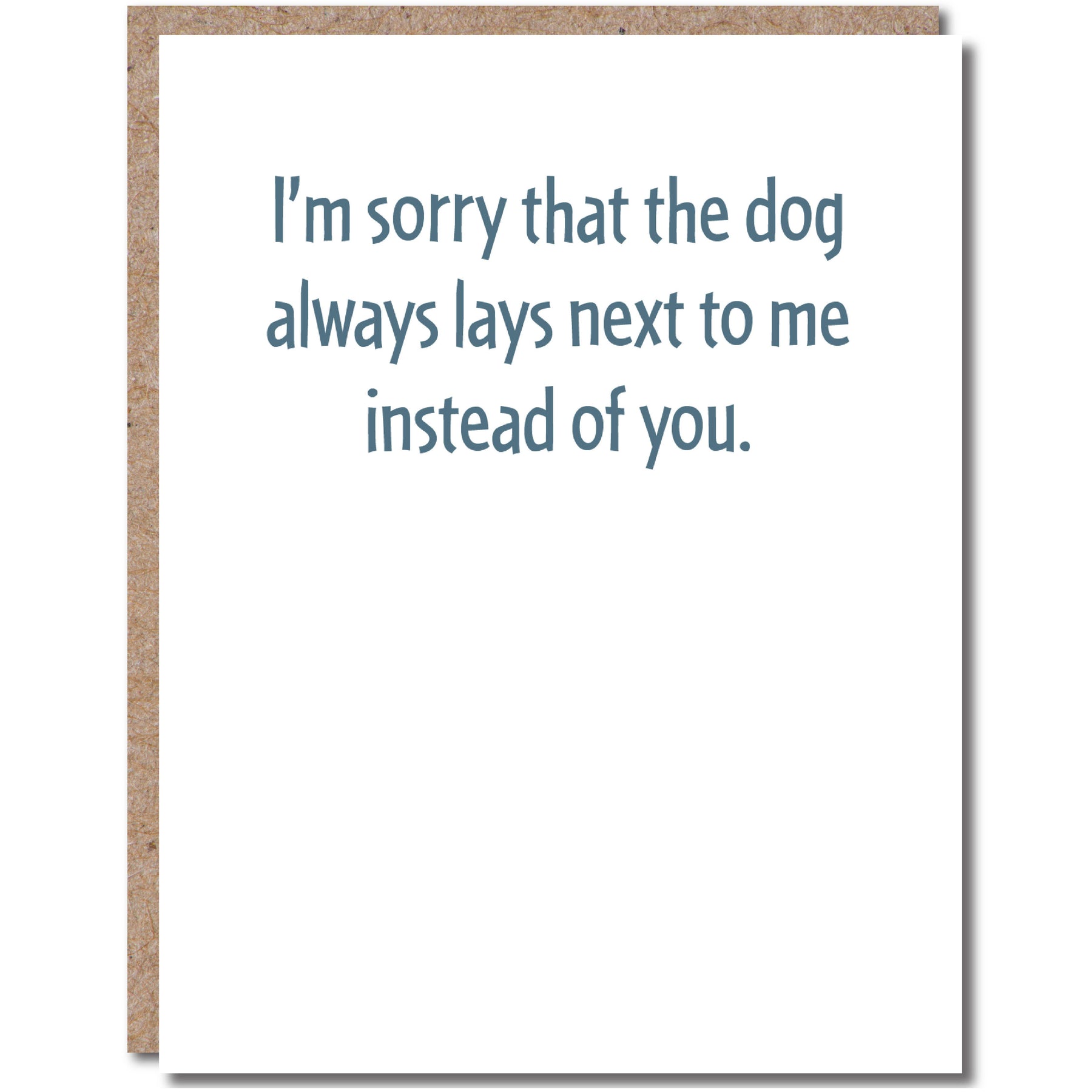 "I'm sorry that the dog always lays next to me instead of you. I'm sorry that the dog always lays next to me instead of you."