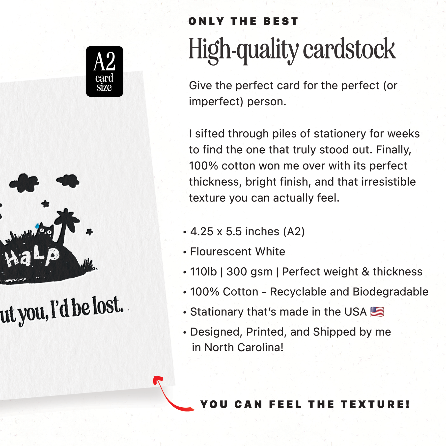 - Front Text: "Without you, I'd be lost." (Text on the graphic reads "HALP")