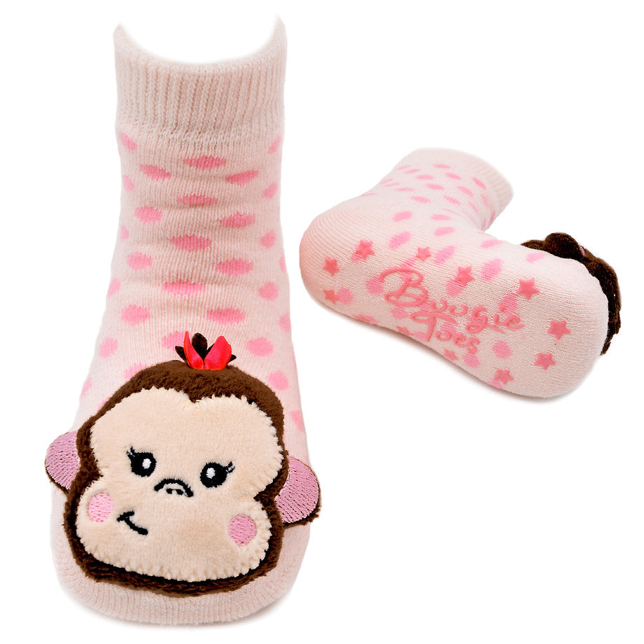 Boogie Toes are the perfect addition to any kid wardrobe and make great gifts too! Rubber grip-bottoms provide traction for new walkers and stuffed characters double as rattles. Pre-washed and pre-shrunk to ensure comfort and durability.