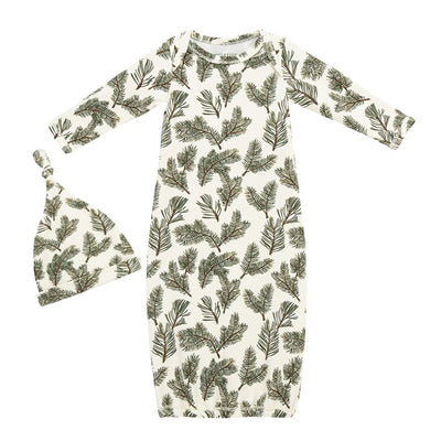 This adorable Gown & Hat Set in the Pine print is perfect for newborns aged 0-3 months. The pine design adds a touch of holiday vibes to this cozy and comfortable set.