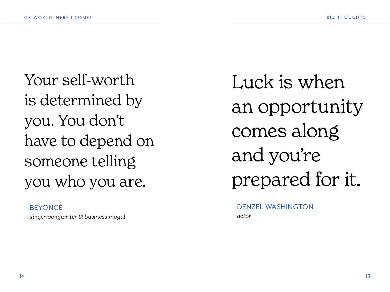 OK, World, Here I Come! is an invaluable book for graduates as they launch into the next chapter of life. Organized by themes such as Self-Care, Success & Failure, Work Ethic, and more, each quote is carefully selected to evoke confidence, motivation, and encouragement for the reader.