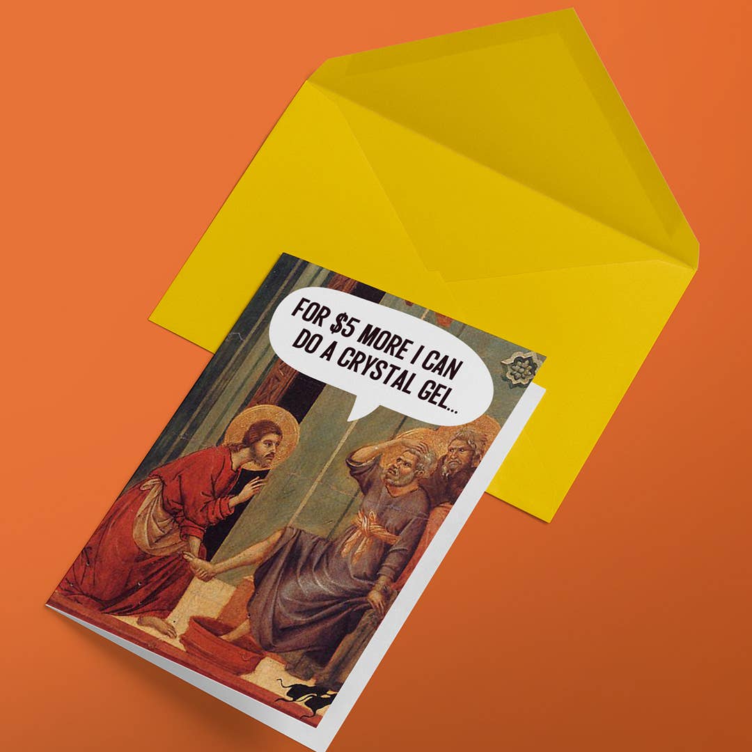 For the moment when washing feet just isn't enough. Whether it's a joke for your friend or a good-natured ribbing, it's perfect for anyone who could use some divine humor in their life.
