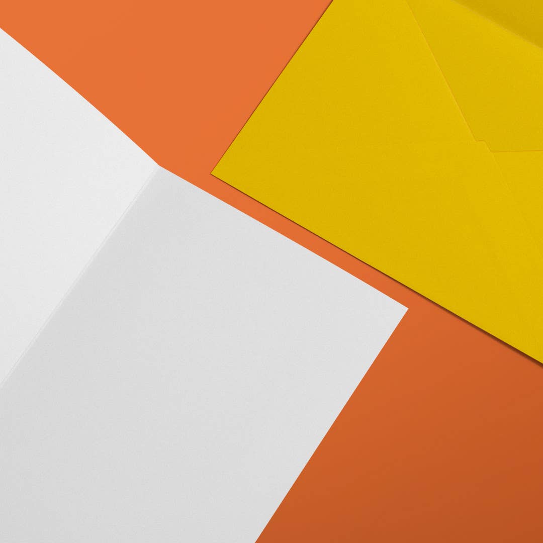 Printed on premium 130lb silk-finished paper, this card comes with a colored A2 envelope (envelope color may vary) and is packaged in a protective cellophane pouch. Made in the USA.