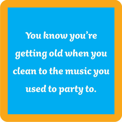 Text reads: You know you're getting old when you clean to the music you used to party to.