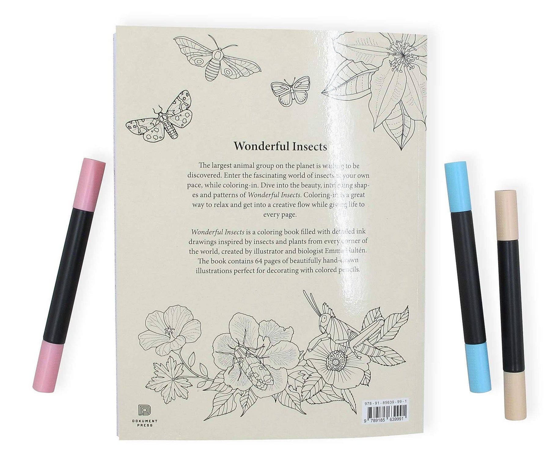 Welcome to the fascinating world of insects! Wonderful Insects is a coloring book filled with detailed ink drawings and patterns inspired by a variety of insects and plants from all corners of the world.