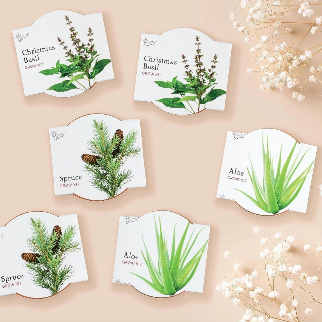 The all-in-one Mini Terracotta Kits by Buzzy Seeds include everything you need to start your own Spruce, Aloe, or Christmas Basil! Each kit contains seeds, a growing medium, a mini terracotta pot, and simple growing instructions. Whether a seasoned gardener or a novice, you'll find these pots easy to use and enjoy watching your seeds grow into beautiful plants.