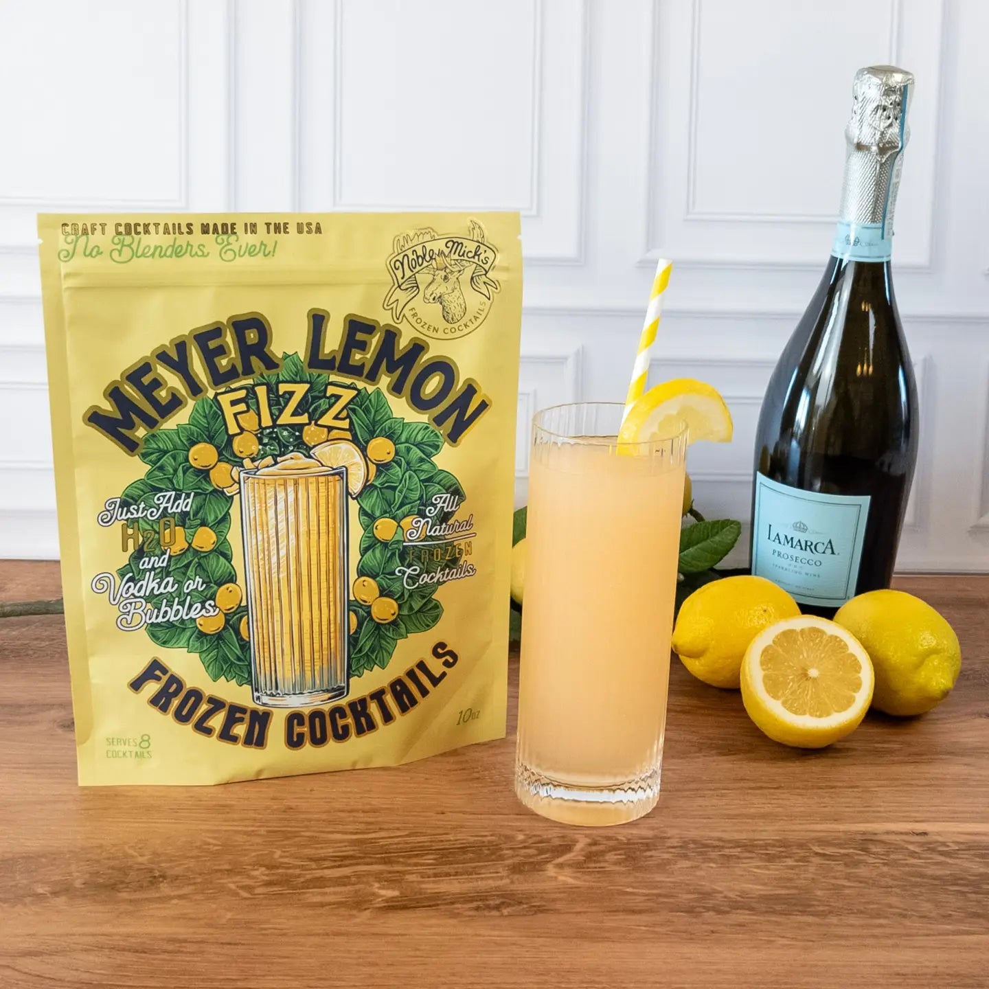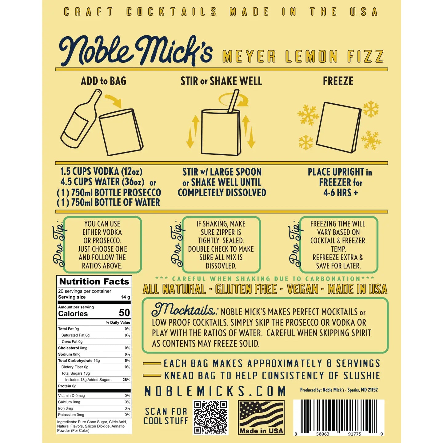 Frozen Cocktails don't get easier than this! Simply add 1.5 cups of vodka and 4.5 cups of water (total 6 cups of liquid), OR 1 750ml bottle of prosecco and 1 750ml bottle of water, shake or stir and throw in the freezer. Then serve right from the bag.