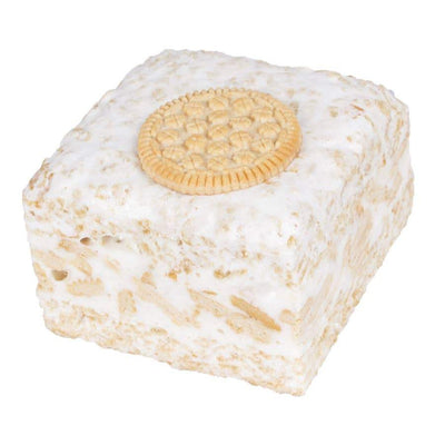 This gourmet marshmallow rice CrispyCake comes with a vanilla cookie on top and vanilla cookies & cream packed in the center of this delicious cake. Cookies, cream, crunchy rice crispies and marshmallow - the perfect combination for anytime of the day!