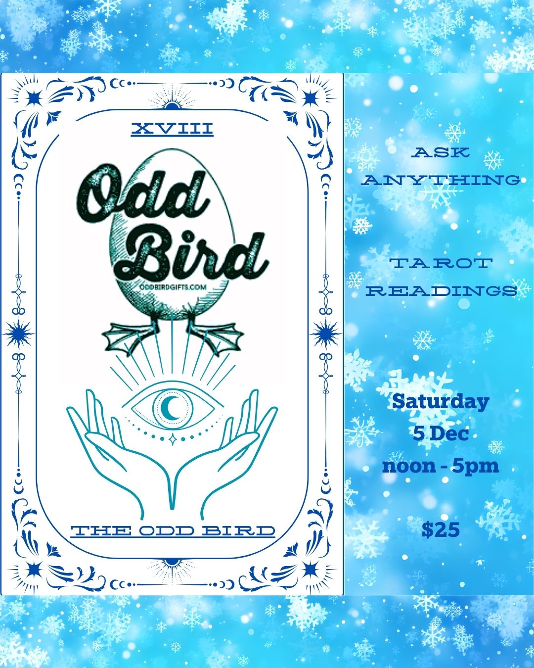 Readings will take place in our upstairs studio at Odd Bird, walk in appointments only.
