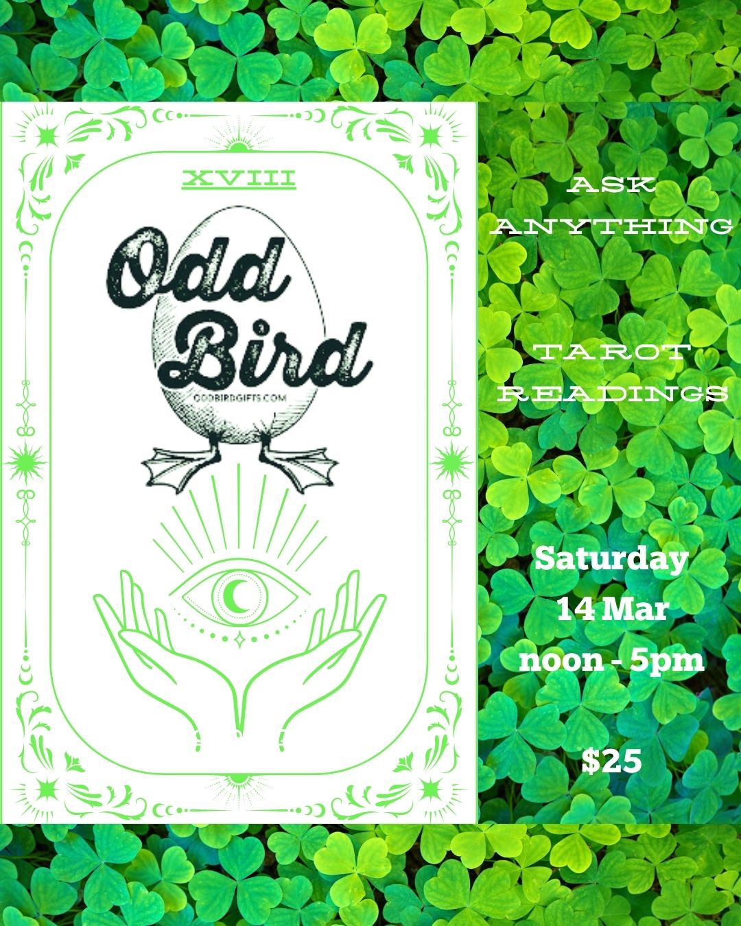 Readings will take place in our upstairs studio at Odd Bird, walk in appointments only.