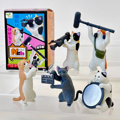 In this blind box collection, you can gather 5 different cats with unique film jobs, including an interviewer, a camera operator, a sound mixer/boom operator, a camera assistant slating, and a grip holding a silver bounce! You just don't know which crew cat you'll get until you open your box!