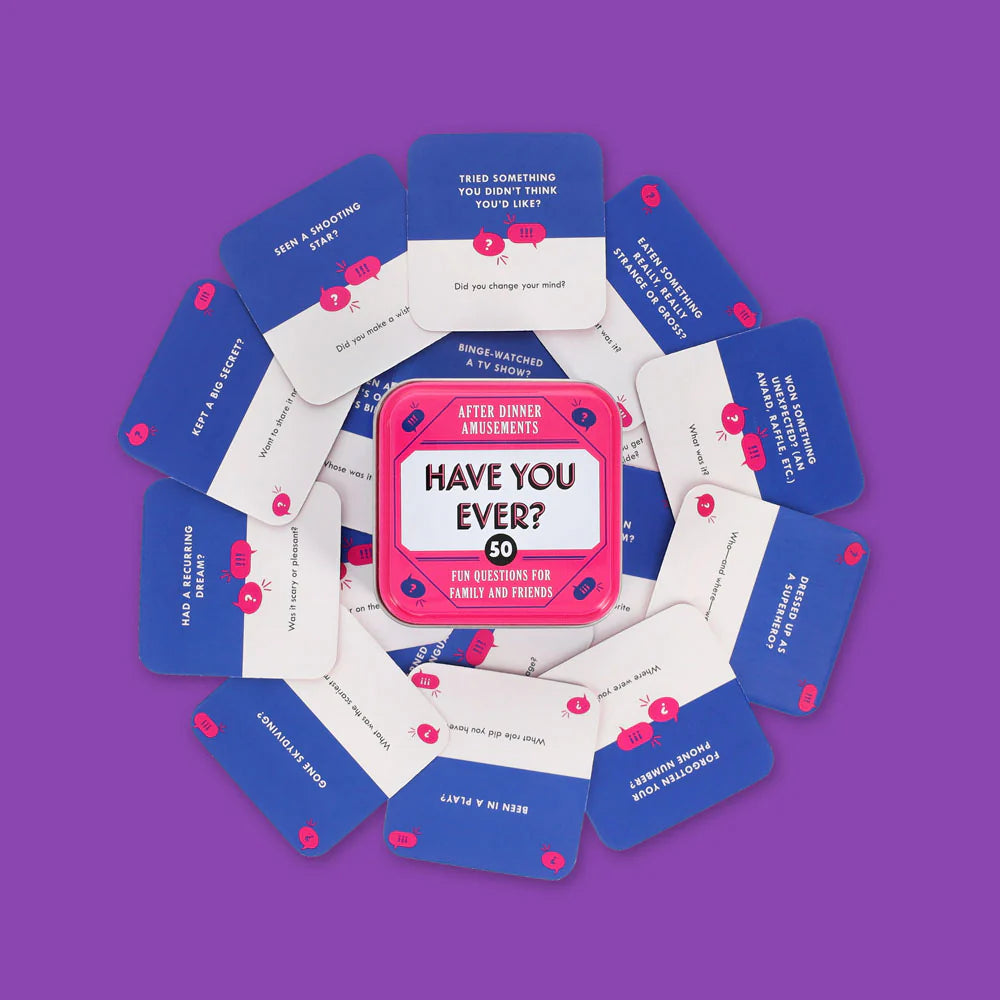 Get to know more about your friends and family with these 50 fun questions. With prompts like "Have you ever: Broken a bone?" and "Have you ever: Sent a text to the wrong person?" these cards will reveal fun and fascinating facts about the people you think you know best. You might be surprised at the stories these questions uncover!