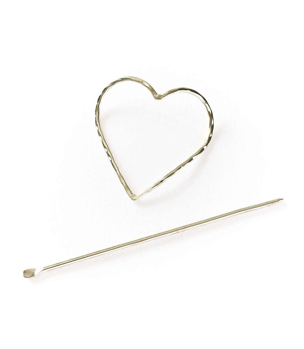 The Alaya Heart Hair Pin features a silver tone heart and pin made of brass for a fresh minimalist look. This hairpin can be worn in the day as a fashionable way to keep hair out of the way or for a special occasion on a polished hairstyle or bun.