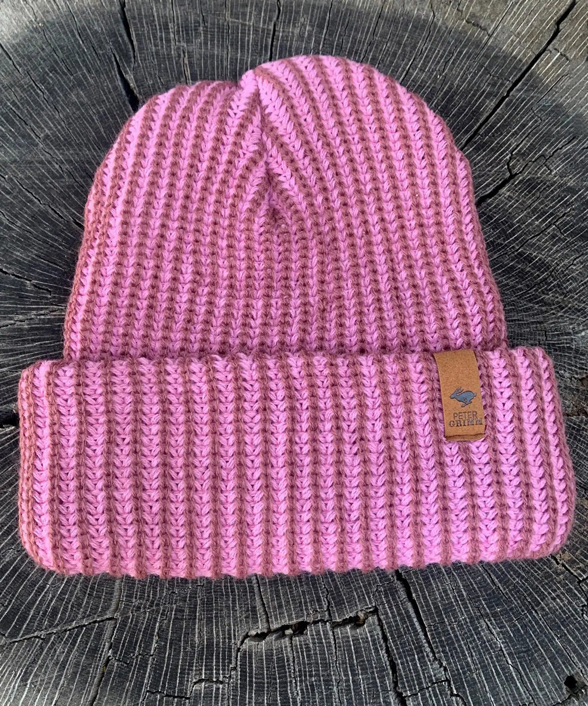 The Peter Grimm Frontside Beanie is a unisex fall/winter hat style made from 100% acrylic and features a side suede Peter Grimm leather label. Available in a range of striped colors.