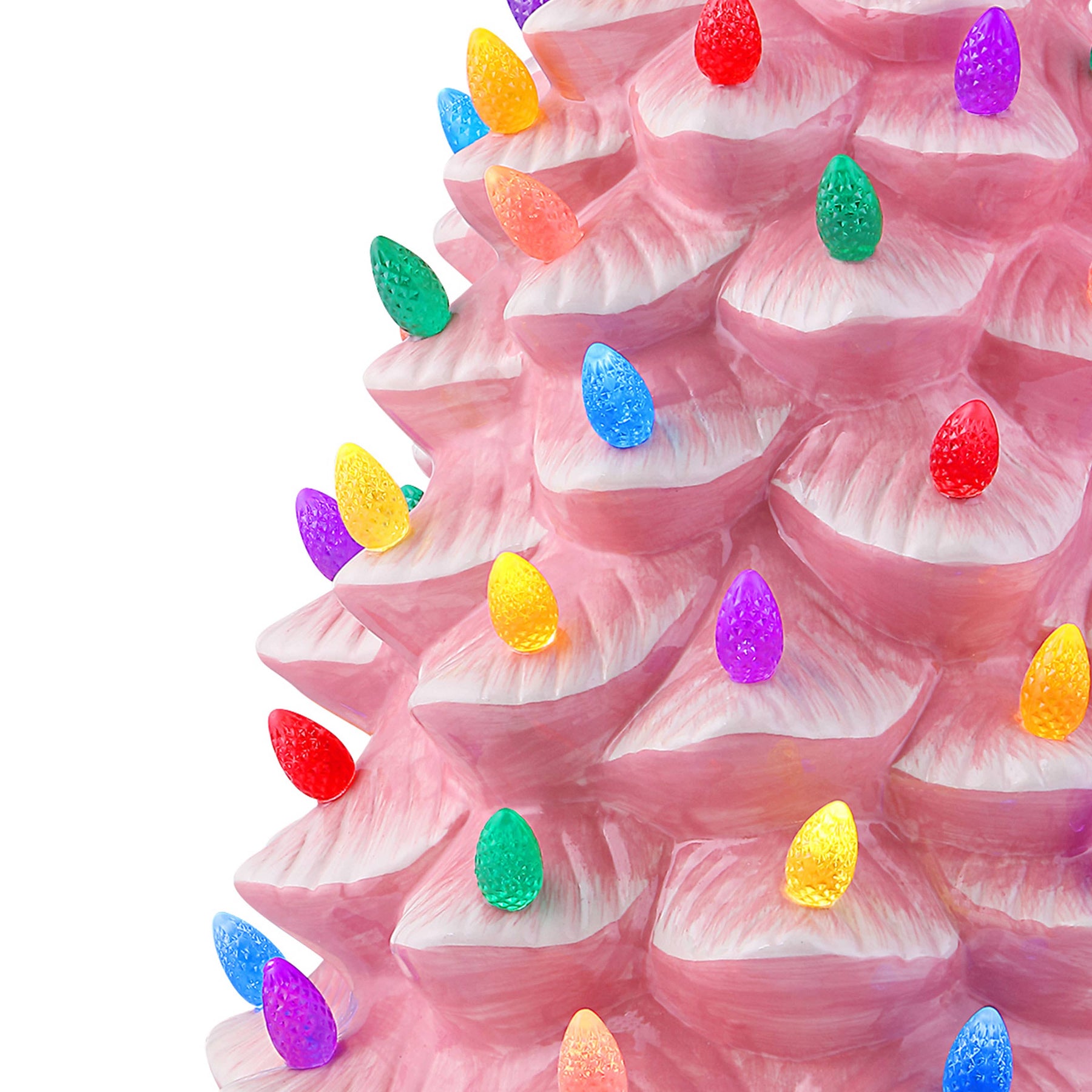 Bring the vintage charm home with this 24" Nostalgic Tree by Mr. Christmas. Inspired by the trees of decades past but brought into the present with new technology, this tree features a polished pink finish, LED light glowing through faceted bulbs, and a bright yellow star illuminating the top. Operates on an included AC adapter with on/off switch.