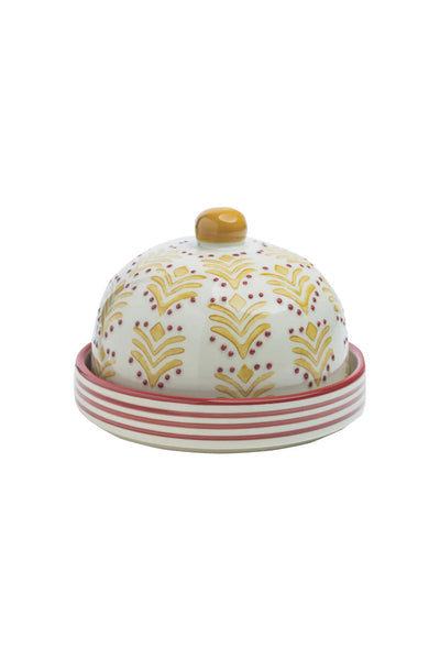 This handmade cheese bell is a real eye-catcher. With its lovingly applied prints and detailed design, it brings elegance to any table. The beautiful patterns give this useful kitchen accessory a unique and nostalgic feel. Made from high-quality materials, it keeps your cheese fresh and protects it perfectly.