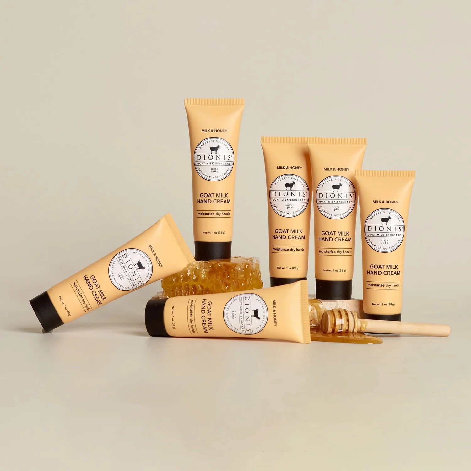 Experience the transformation of your dry skin with this best-selling goat milk hand cream! Our unique formula is rich & creamy with a luxuriously fresh fragrance of rich, milky goodness and sweet honey straight from the comb to hydrate dry skin without leaving a greasy residue. We make this luxurious formula with nourishing goat milk, which is great for sensitive skin. Join the herd and experience the wonders of goat milk. Best of all, it comes in a travel-friendly 1 oz tube.