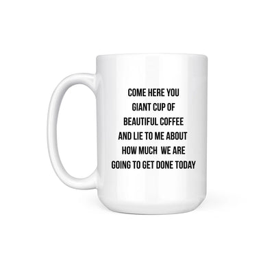 "Come here you giant cup of beautiful coffee and lie to me about how much we are going to get done today"