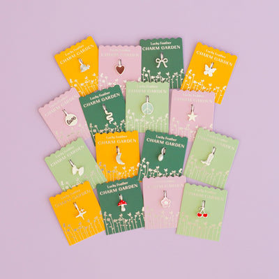 Simple, cute, and elegant, these sterling silver-dipped shaped charms will enhance your stackable collection! Charm Garden features miniature vintage-inspired shapes that can be added to necklaces, bracelets, and even special earrings to create your perfectly personalized jewelry bouquet!