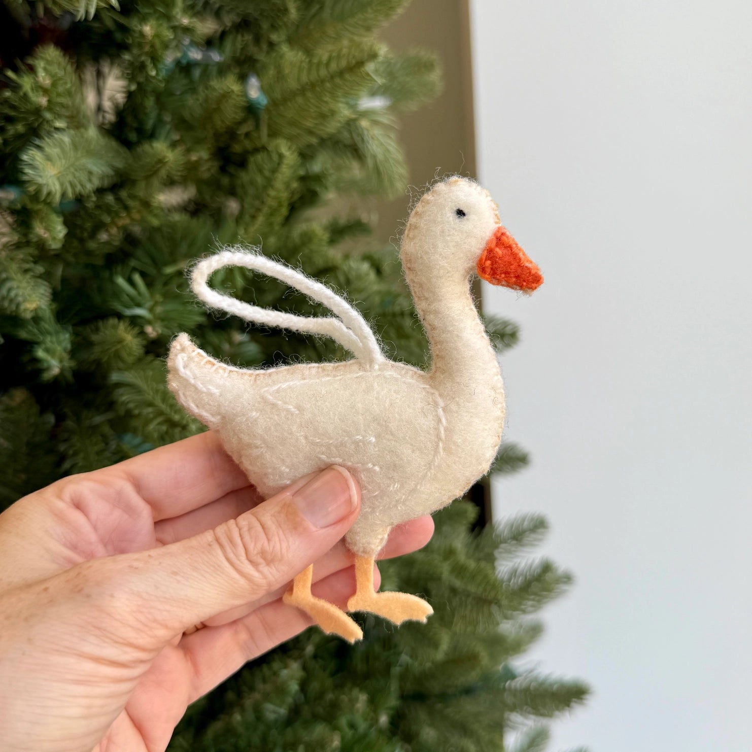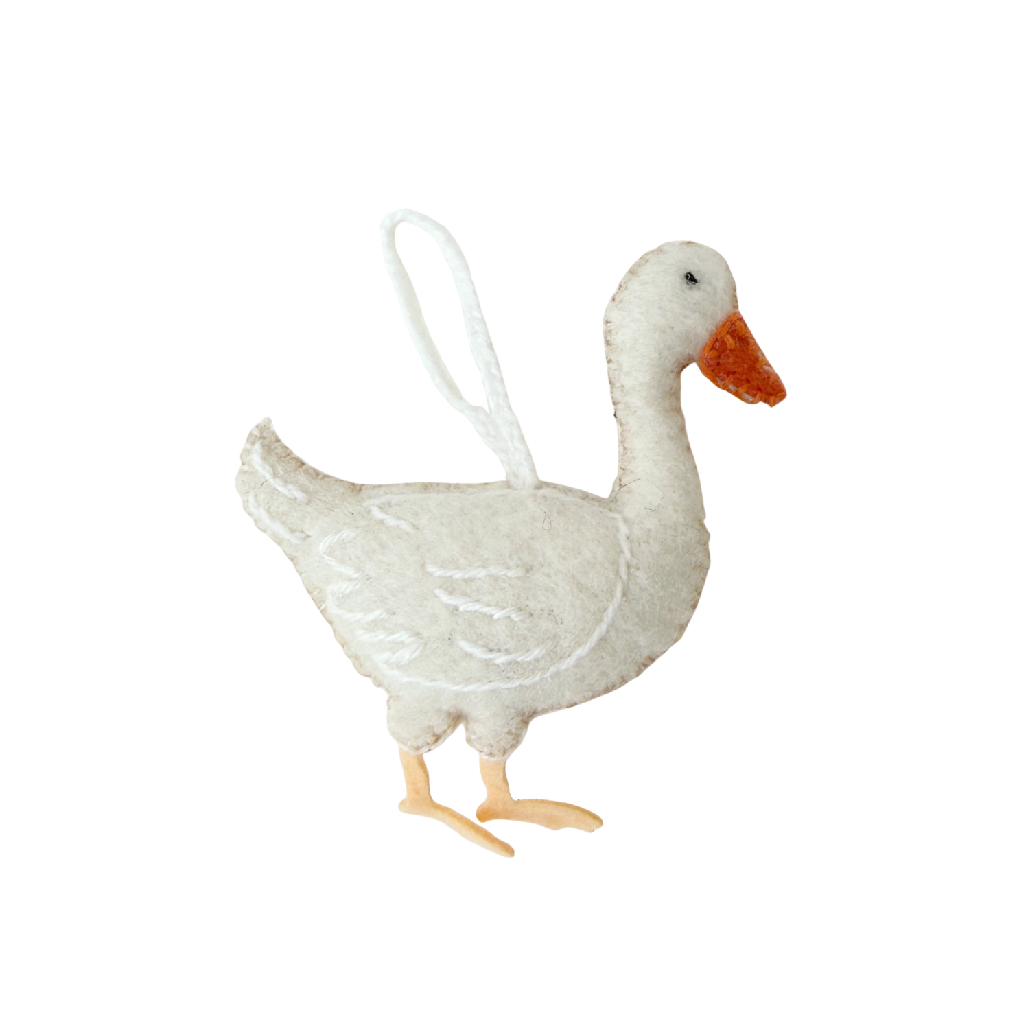 White Goose Embroidered Wool Ornament