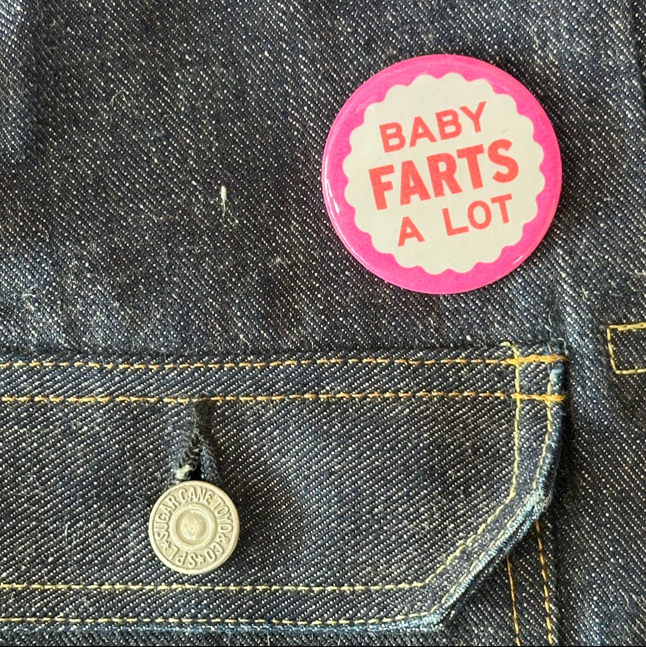 1.75" Button. Bright Fluorescent Coral and Fluorescent Pink inks.