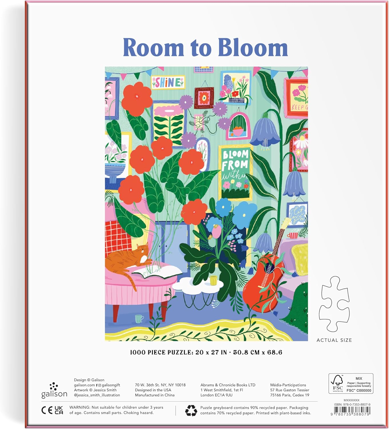 Step into a cozy living room bursting with life in the Room to Bloom 1000 Piece Puzzle from Galison. This charming scene features houseplants thriving everywhere—even growing out of a vintage guitar—creating a whimsical, lush indoor jungle that’s full of personality and warmth. Every piece you fit together brings you closer to this vibrant, green-filled sanctuary.