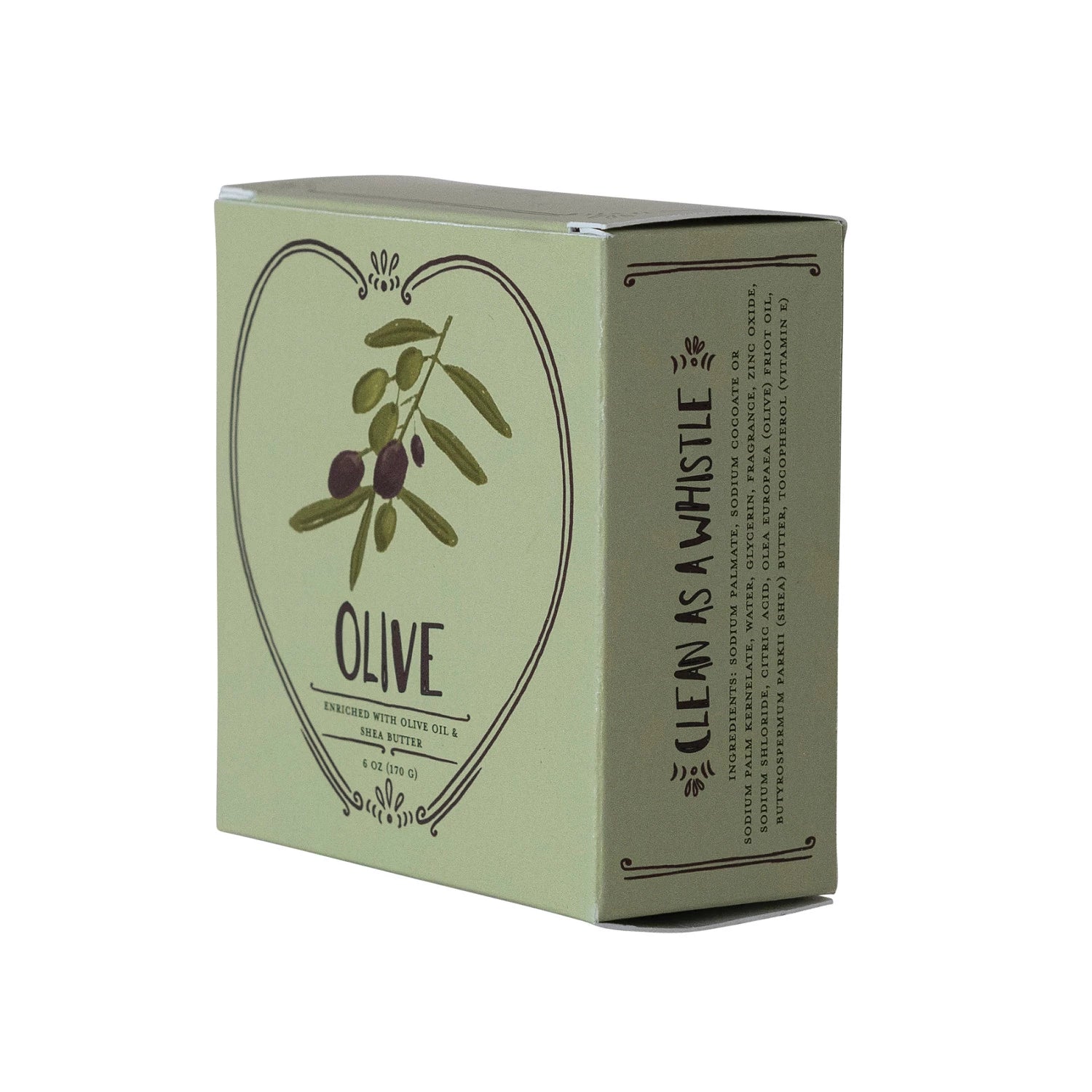 Olive Scented Olive Oil & Shea Butter Triple Milled Heart Shaped Bar Soap.