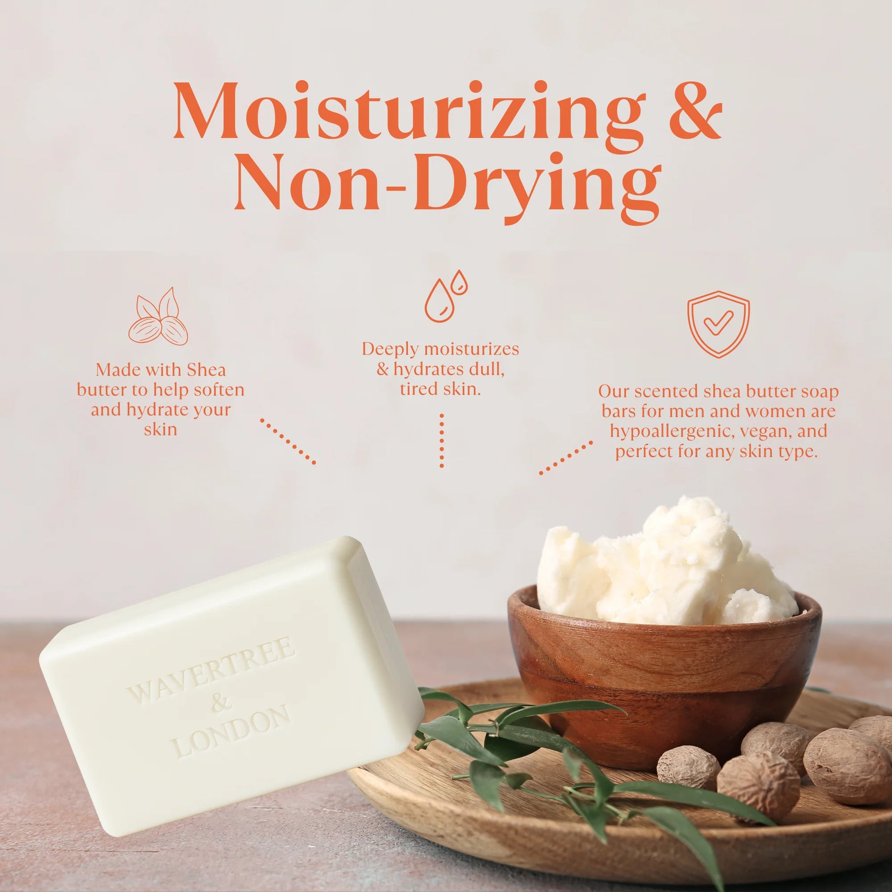 Wavertree & London soap bars are produced in Australia by dedicated artisan soap makers using the traditional French Triple Milling process. Enriched with pure Organic Shea Butter, these bars will leave your skin soft and moisturized.