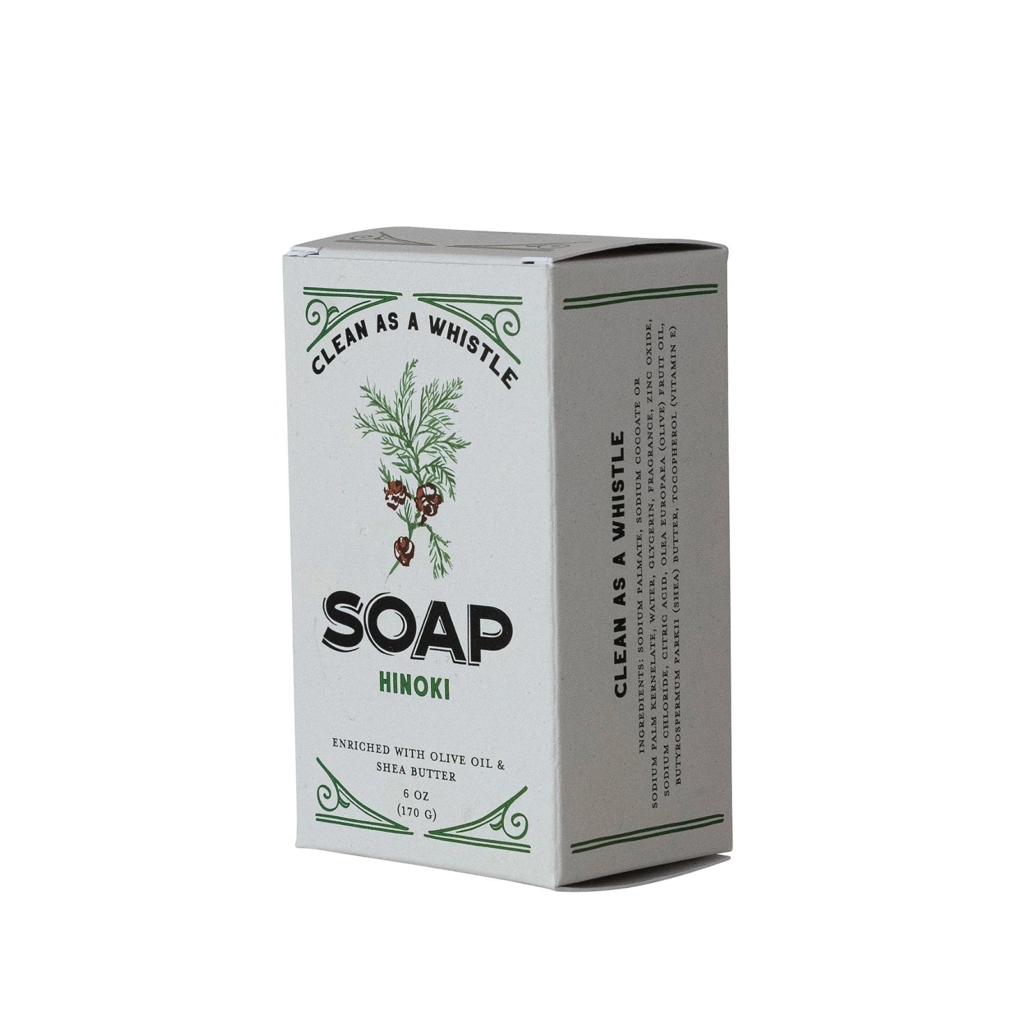 Hinoki-scented bar soap made with olive oil and shea butter for superior moisturizing power. Triple milled so it won't fall apart like more hastily made soaps, and proudly made in the U.S.A.