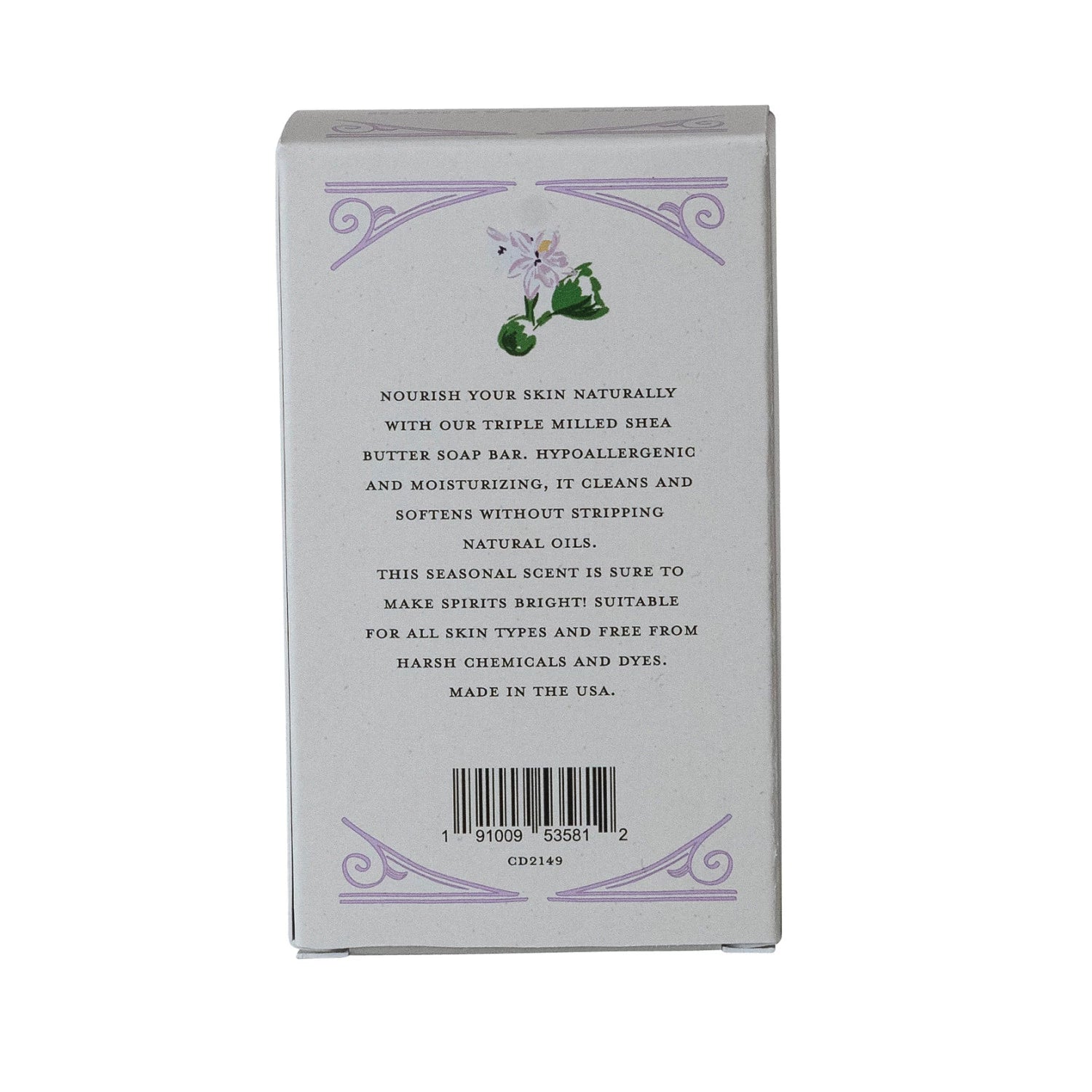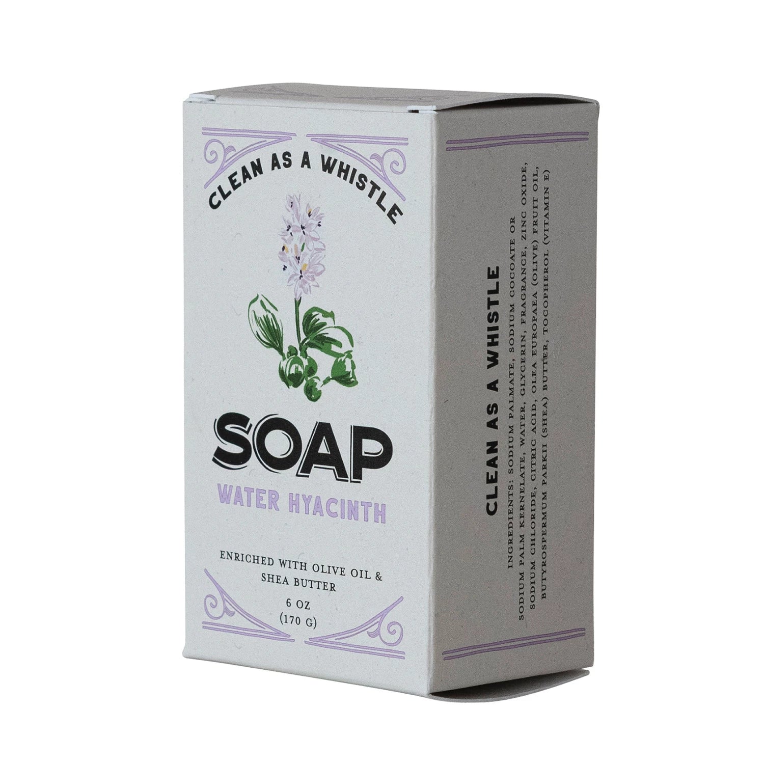 Water hyacinth-scented bar soap made with olive oil and shea butter for superior moisturizing power. Triple milled so it won't fall apart like more hastily made soaps, and proudly made in the U.S.A.