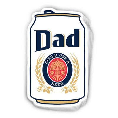 This beer can shaped sticker reads: Dad Could Use A Beer