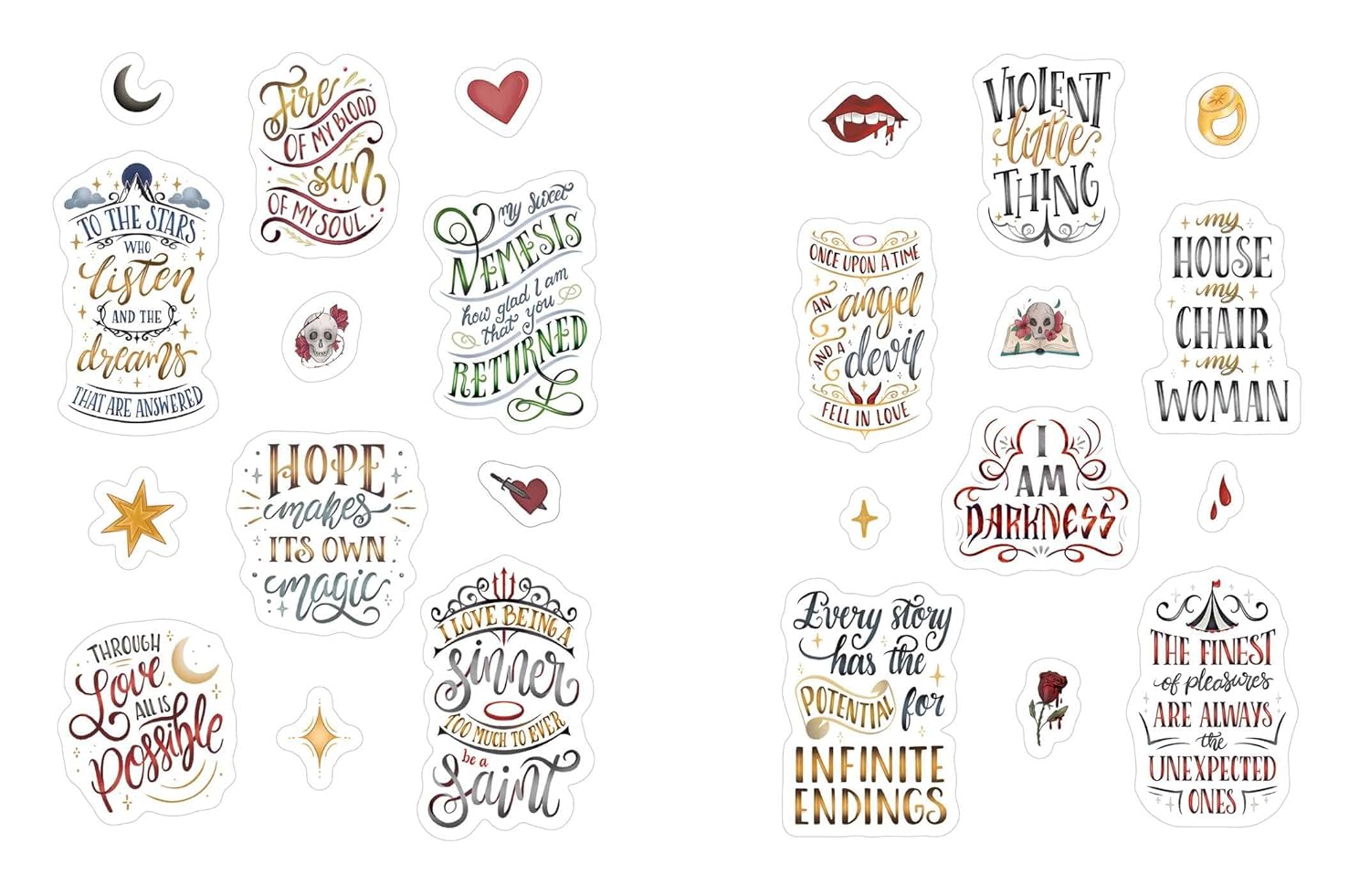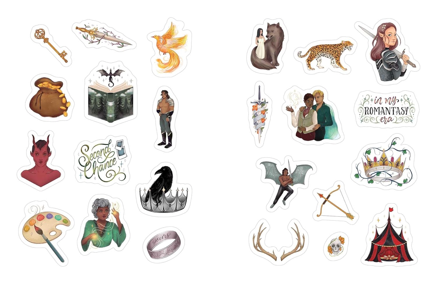 Dive into your favorite genre full of fire-breathing dragons, fated mates, love spells, and more with this must-have collection of over 500 fantastical romantasy stickers dedicated to the themes and tropes you love!