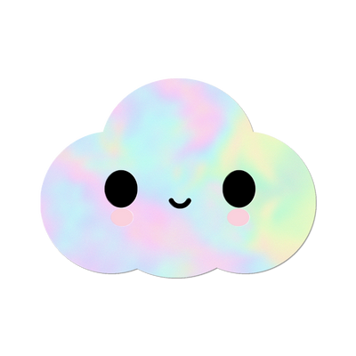 This shiny cloud has two big eyes and a tiny little smile. Great for notebooks, laptops, and other dry surfaces!