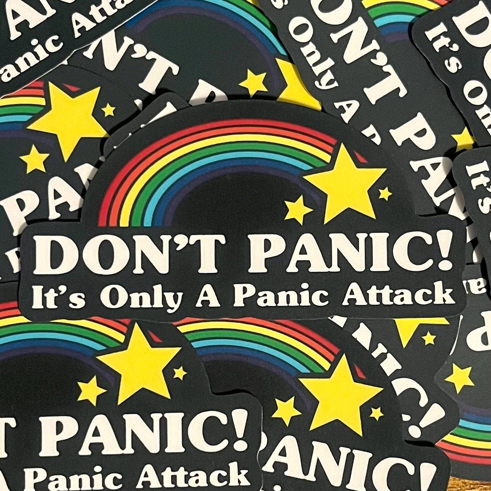 This sticker reads: "Don't Panic! It's Only A Panic Attack"