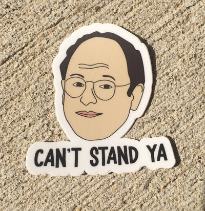 1.92" x 2" Vinyl Sticker Die-cut sticker of a line art portrait of George Costanza from Seinfeld and the text "Can't Stand Ya".