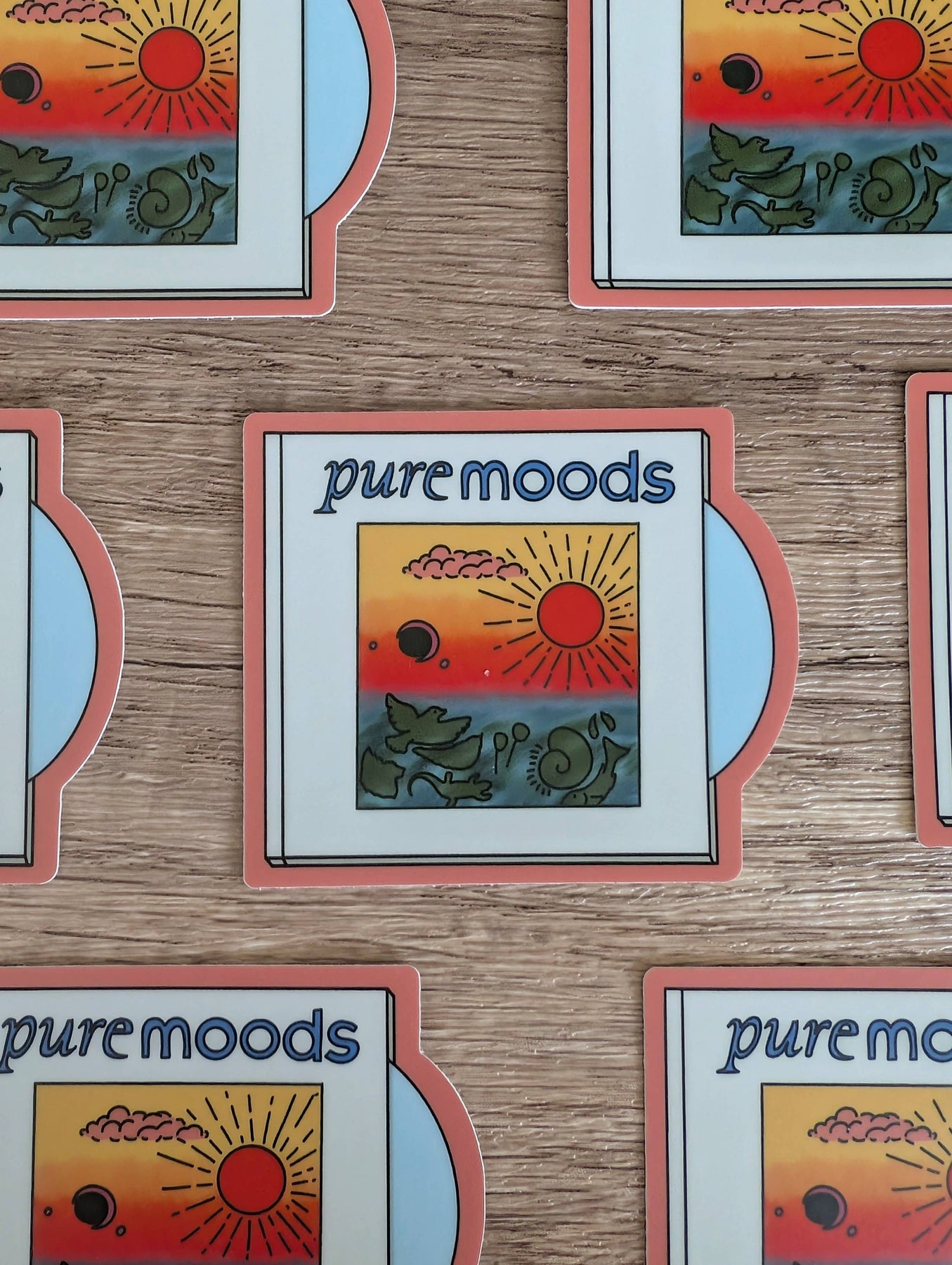 This is a 3" matte vinyl sticker depicting the CD case for "Pure Moods" in all its 90s glory.