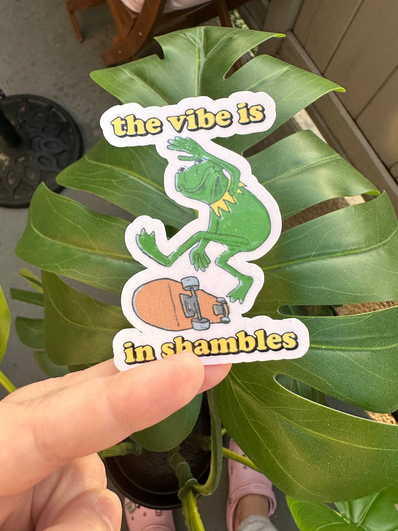 Kermit the Frog on a skateboard declaring that the vibe is in shambles. Listen. We've all had a tough day. This sticker at least lets me laugh about it.