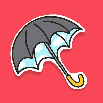 This umbrella may be grey on the outside but has blue skies with white fluffy clouds on the inside!