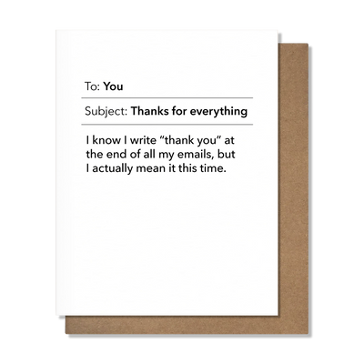 Cover reads: "To: You // Subject: Thanks for everything // I know I write “thank you” at the end of all my emails, but I actually mean it this time."
