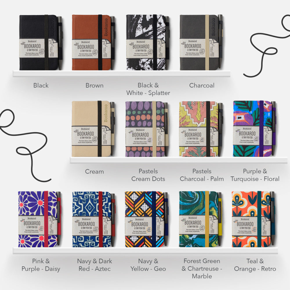 The ridiculously cute baby sibling of the Bookaroo notebook family together with the baby sibling of the Bookaroo black ball point pens. Perfect pocket sized, and printed in lots of bright and beautiful patterns, each complementing a classic Bookaroo colorway. Slip this tiny journal into your pocket or bag and never be without paper and pen on the go!