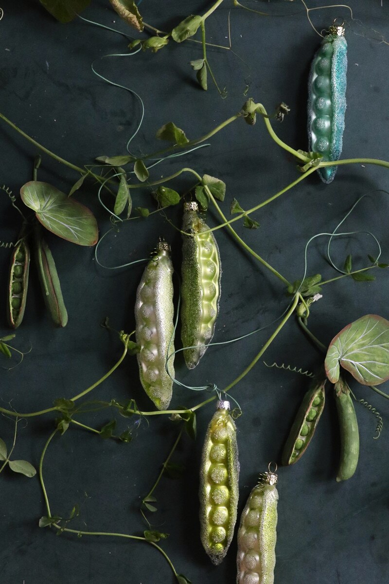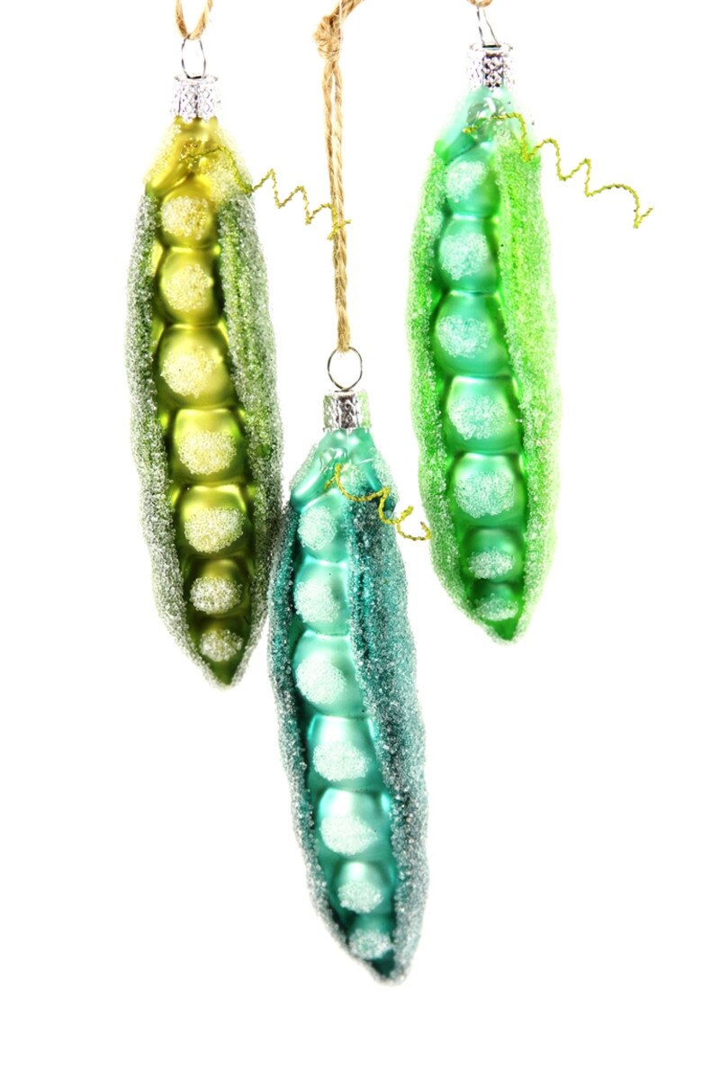 Just like peas in a pod! These tree ornaments are shaped like garden peas in three shades of green. Great for gardeners, homesteaders, and anyone outfitting a food-themed Christmas tree!
