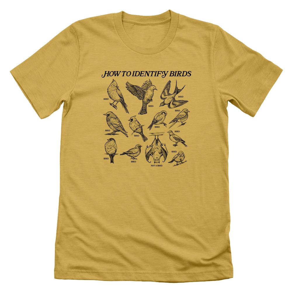The "How to Identify Birds" tee reminds you just how easy birding is! Does it fly? It's a bird! Unless it's a bat, in which case: not a bird. Boom.